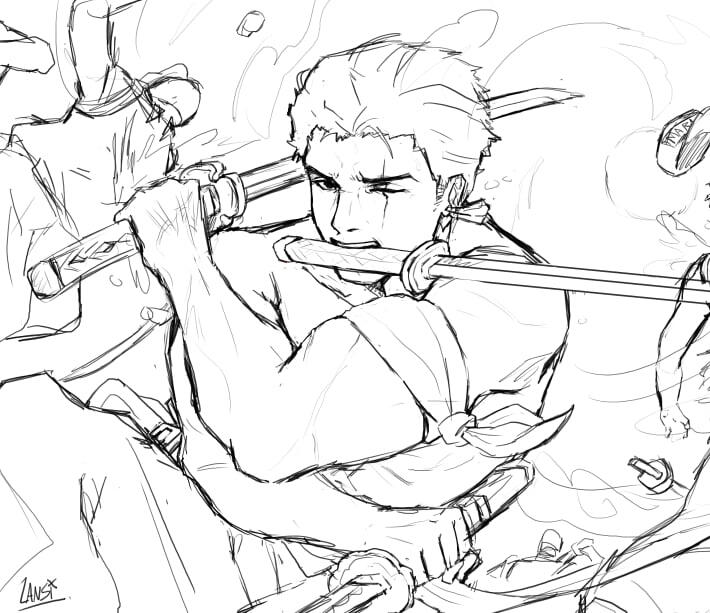 This is the refined sketch usually lined and splashed with grays or flat colors to visualize the piece before rendering.