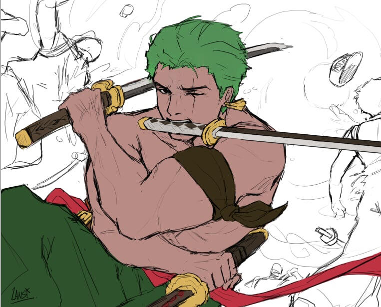 This is the refined sketch usually lined and splashed with grays or flat colors to visualize the piece before rendering.