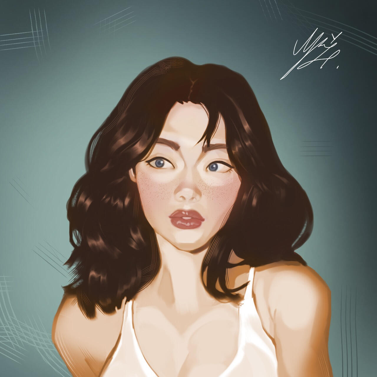 The final piece, refined with blending layers and creative touches.